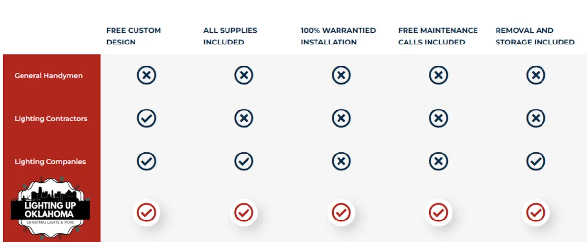 Lighting Up Oklahoma are super friendly and professional! They work diligently and provide excellent service all the way through instillation to resolving hurdles!